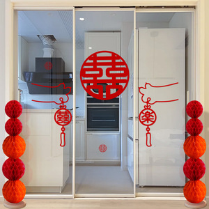 キッチンハッピーワードステッカー、結婚式専用ステッカー、ドア、結婚式の部屋のレイアウト、ハッピーガラスステッカー、引き戸、新婚部屋の装飾