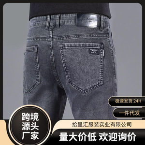 夏用薄手高伸縮性色落ちしにくいメンズジーンズストレートフィットスリムミッドハイウエスト深股ルーズビジネスカジュアル