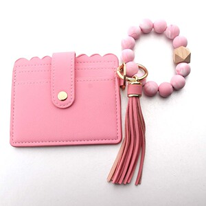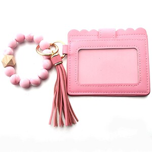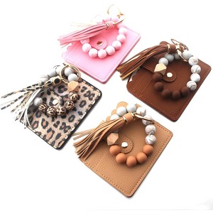 2024 クロスボーダースポットヒョウ柄カードホルダー PU レザー財布レディースキーホルダー木製ビーズブレスレットシリコーンビーズブレスレット