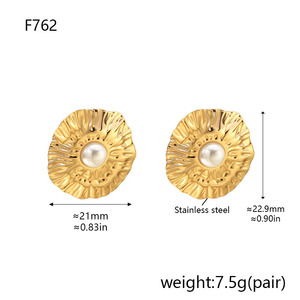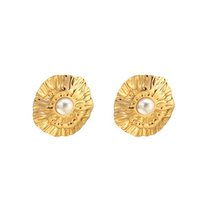 F762-ゴールドラウンドイミテーションパールイヤリング