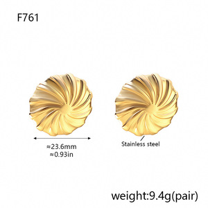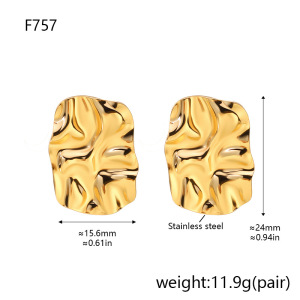 F757-ゴールドプリーツスタッドピアス
