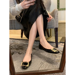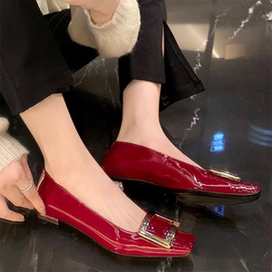 角ボタンの靴の女性の太さと気質の方頭象の灰色の高級感の漆の皮のrvハイヒールの職業の通勤は疲れません。