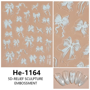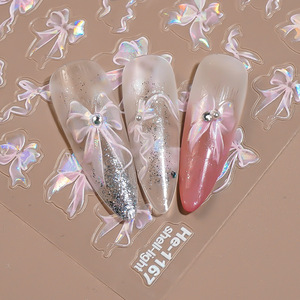 Redanco新5Dレリーフネット赤蝶結び貝殻光ネイルシール立体爪デカールHe-1167