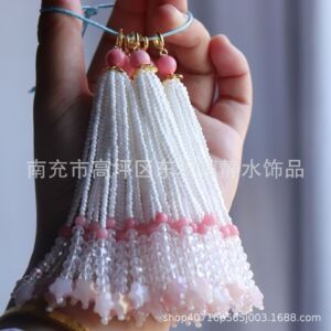 A315 ピンク釉ライスビーズカルセドニータッセルスイベルバックルペンダントヘアピンブレスレットネックレス diy 衣類アクセサリー
