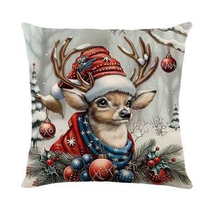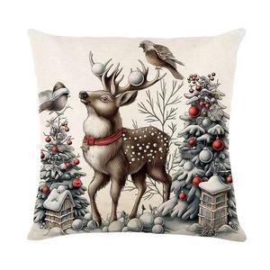 圣诞节亚麻抱枕套亚马逊家居午睡靠枕抱枕沙发床头靠垫枕头套temu
