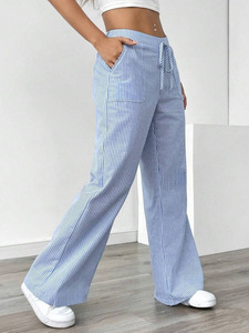 ヨーロッパとアメリカの貿易クロスボーダー 2025 新しいストライプのズボンカジュアルで多用途なストリートファッションルーズワイドレッグ女性