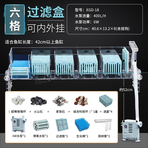 フィルターボックス4箱、長さ30.8cm(内部または外部に接続可能)+水流調整可能な6Wウォーターポンプ
