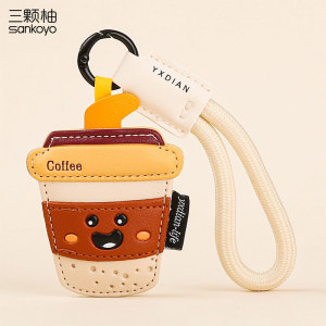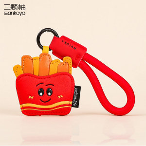 创意皮革奶茶杯钥匙扣可爱卡通皮质薯条冰淇淋情侣包包挂件小礼品