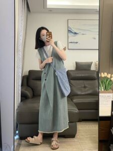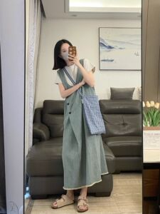S【太った女の子の夏コーデ/ノースリーブサスペンダースカート】