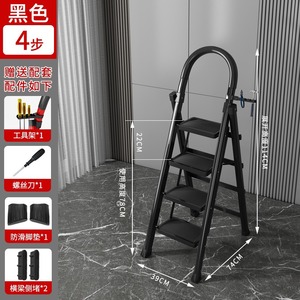 アップグレードされたアルミニウム合金ペダル (黒の 4 段)★強化され厚みが増した★-家庭用はしご