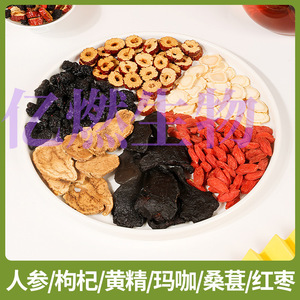 高麗人参(樹齢5年未満の人工栽培)、ナツメヤシ、桑の実、マカ、タデ、クコ