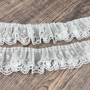 刺繍二層刺繍ロリータレースプリーツアクセサリー三日月プリーツプリーツメッシュ衣類スカート裾
