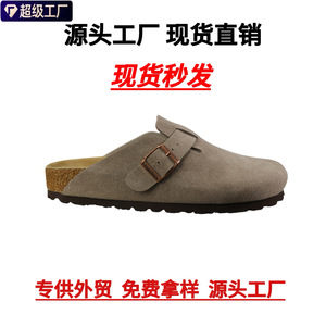 包頭のスリッパの博ケンの女性の外の柔らかい底の2025厚い底の春の新型のベーケンの柔らかい皮の怠け者の足はコルクの平底を漕ぎます。