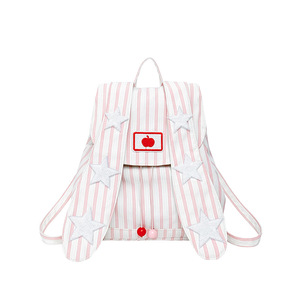 ウサギの耳ストライプバックパックピンクバックパックスター刺繍バッグ大容量通勤学生スクールバッグキャンバス