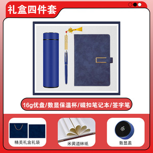【ブルー4点セット】-Uディスク/カップ/ノート/ペン