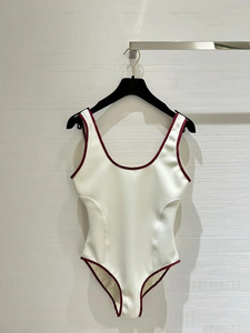 正しいバージョン~2025春夏新作赤白コントラストU字ネックワンピースオフホワイト水着9985-1