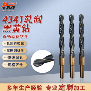 高速鋼4341圧延黒黄麻花ドリル 鋼板鉄板金属ステンレス専用ストレートハンドル麻花ドリルビット