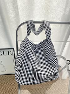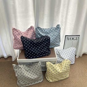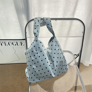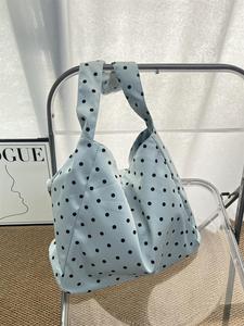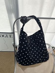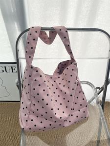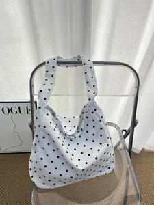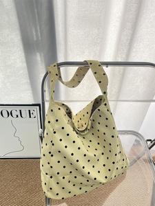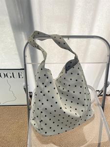 日本の新しい文学的な水玉模様のキャンバスバッグ、シンプルでトレンディな小さな新鮮なショルダーバッグ、大容量の通勤トートバッグ、トレンディな