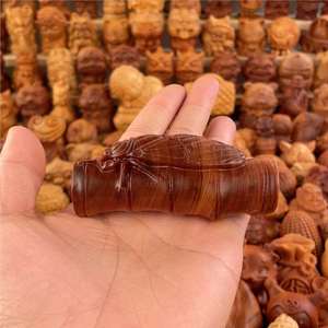 天然モミ無垢材彫刻、高油古材、驚異の手持ち品、文具、段々と上昇する金蝉と蝉の置物