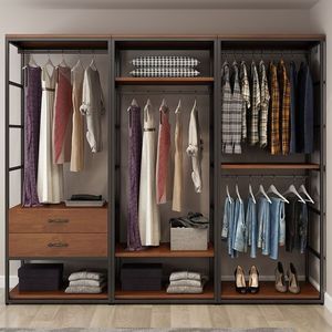 ウォークインクローゼット床から天井までの衣類ラック家庭用シンプルな引き出し収納付き二層組み合わせオープンクローク棚