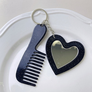 新しい小さな新鮮なインスタイルグリッタースパンコール愛化粧鏡キーホルダーペンダント diy バッグペンダントアクセサリー