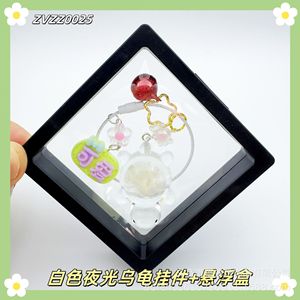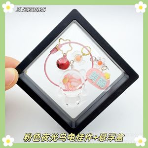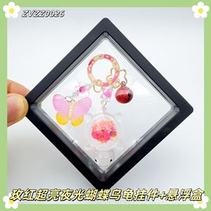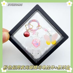 暗闇で光るピンクのカメと蝶のキーホルダー 1 個 + 吊り下げボックス