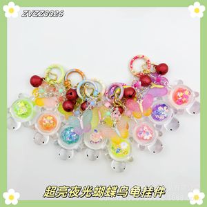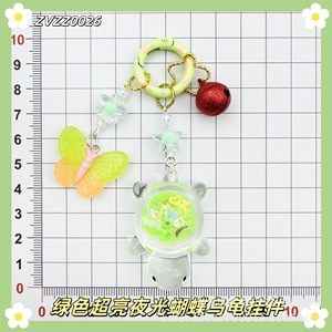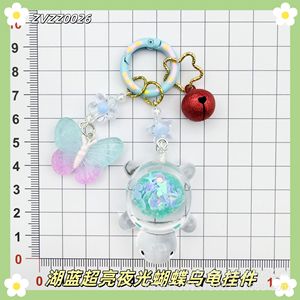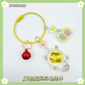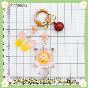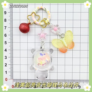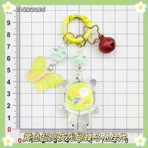 暗闇で光る黄色のカメと蝶のキーホルダー 1 個