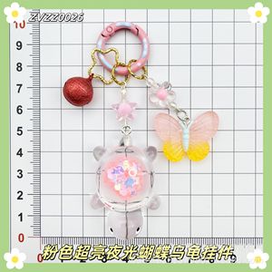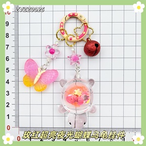 暗闇で光るピンクのカメと蝶のキーホルダー 1 個