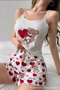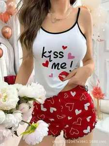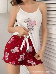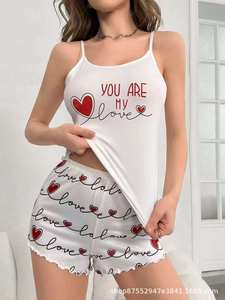 欧美风睡衣女吊带短裤套装跨境亚马逊速卖通卡通爱心家居服两件套