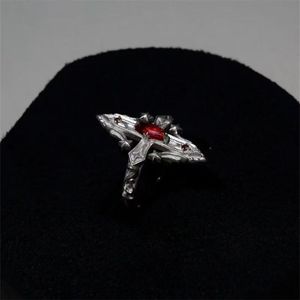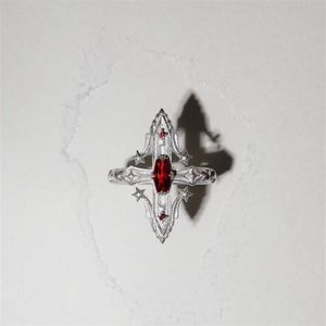 クロスボーダーシンプルな幾何学的なスターリングオープン調節可能なクロスダイヤモンドリングルビーリング