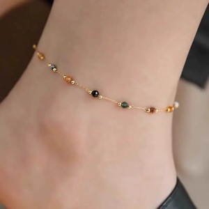 ビーズ天然石アンクレット【ゴールド】