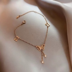 J3007 バタフライラインストーンアンクレット [ローズゴールド]
