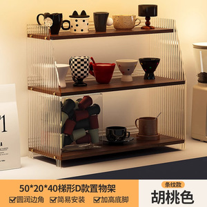 【多機能収納ラック ストライプモデル】ウォールナット色 二段 40ロング