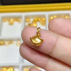 沙金饰品银杏叶吊坠女黄铜镀小众设计轻奢高级感金扇形项坠批发