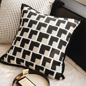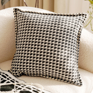 黒エッジビルディングブロックチェス凹凸パターン正方形45x45cm個別枕カバー