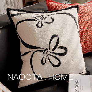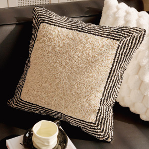 フレンチレトロなリビングルームのソファ枕クリームスタイルの出窓クッションベッドサイドクッション黒と白のストライプの枕カバー芯付き