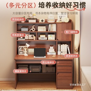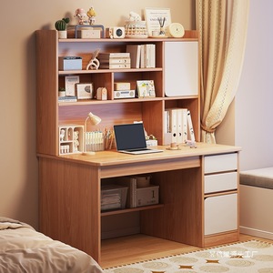 無垢材デスク学生ホーム学習ライティングデスク寝室本棚一体型テーブル本棚引き出し大人のコンピュータデスク