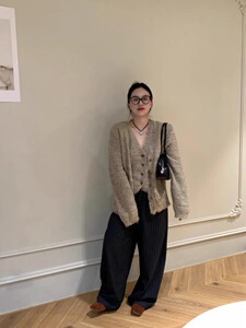 燕麦色开衫/背心+黑色裤子(高品质)