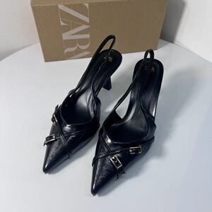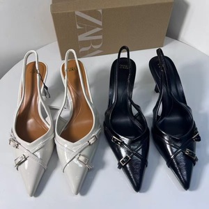 ZA 新 2024 ファッションハイヒールの女性の靴ポインテッドトゥバックルクロスストラップバックストラップスリングバック浅いファッションサンダル女性のための