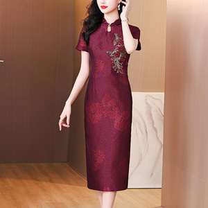 nrm7010喜婆婆婚宴装礼服裙2025夏季新款时尚优雅气质绣花连衣裙