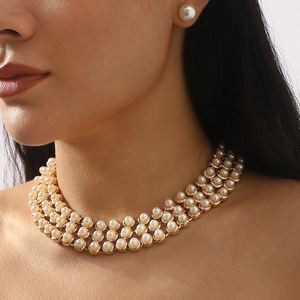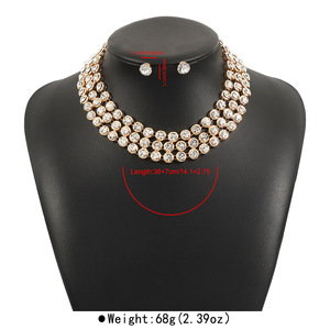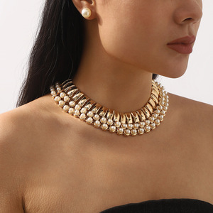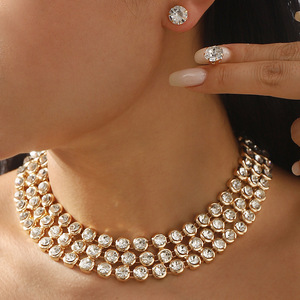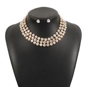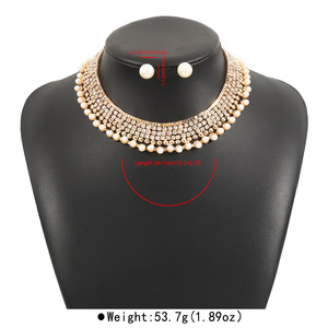 N12606 ヨーロッパとアメリカの複数列ワイドフルダイヤモンド象嵌パールネックレスイヤリング光沢のある多用途チョーカージュエリーセット