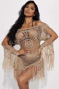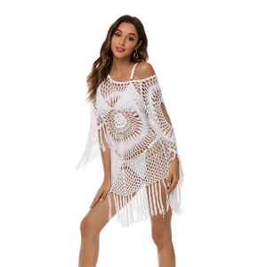 女性用セクシーな編み込みブラウス、ボヘミアン日焼け止め服、ビーチハンドかぎ針編みビキニブラウス、エスニックスタイル中空