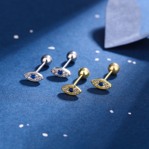 超キラキラ悪魔の目ネジ留めイヤリング、シンプルミニ、小さくて絶妙なイヤリング、就寝時に外さなくてもOK、耳ピアス