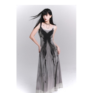 グレーのサスペンダードレス 2025 夏クールでシックなニッチデザイナーの海辺の旅行着用