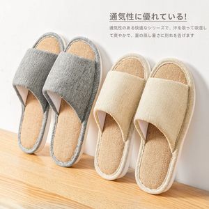 亜麻のスリッパの女性の家の室内の春と秋の家庭用カップルの四季の開口部は静音の滑り止めの綿麻のスリッパの男性を引っ張ります。