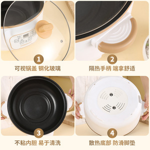学生寮電気調理鍋多機能オールインワン家庭用電気鍋テイクアウト鍋電気中華鍋蒸し器ノンスティック電気鍋