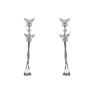 甘くて絶妙なダイヤモンドがちりばめられた蝶のロングチェーンタッセルイヤリング、ファッショナブルで見栄えの良いイヤリング、女性用の新しい多用途イヤリング
