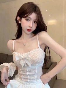純粋な欲望のホットガールセクシーなレースのリボンショートチューブトップ痩身インナーキャミソールトップ 2024 夏