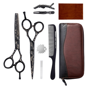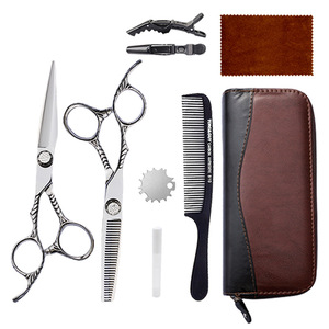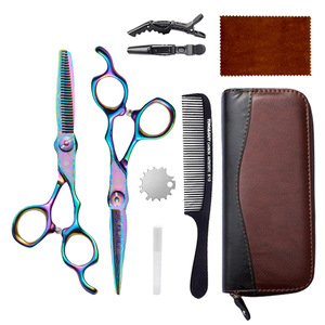 理髪はさみセット 6 インチ 9CR ステンレス鋼フラット歯はさみ薄型はさみ前髪ツール理髪はさみ