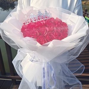 黒梅ソース バレンタインデーの誕生日にガールフレンドとボーイフレンドに贈るバラの花束、ソーププリザーブドフラワー完成品